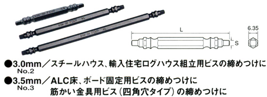 | 3.0-110 | : | 呼び寸法S(o):3.0(1/8”) 全長L(o):100 |